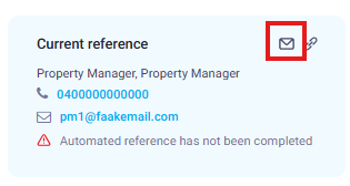 To resend a reference request for either residential history or employment, please click the mail icon outlined in the red box below: