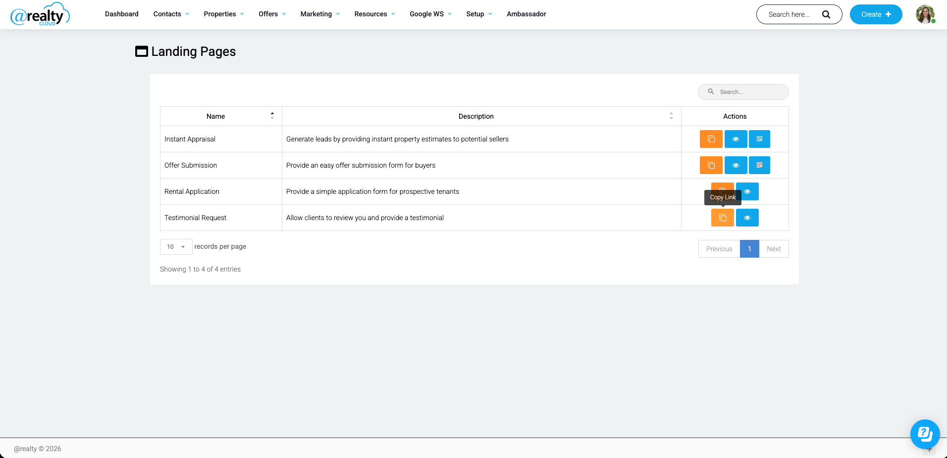 - Landing Pages - Visit your 'Landing Pages' page in the CRM to find your link