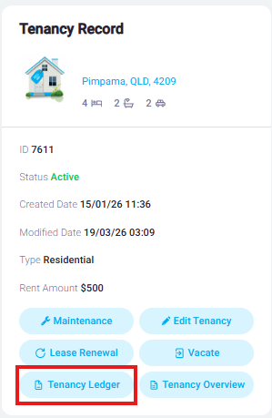 If you need to access a tenant ledger, please navigate to the tenancy record in the Cloud & click the 'Tenancy Ledger' button on the left hand side of the screen.